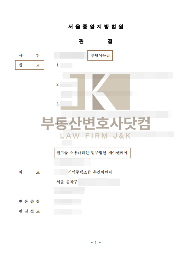 ▲ 의뢰인 1심 부당이득금 소송 승소