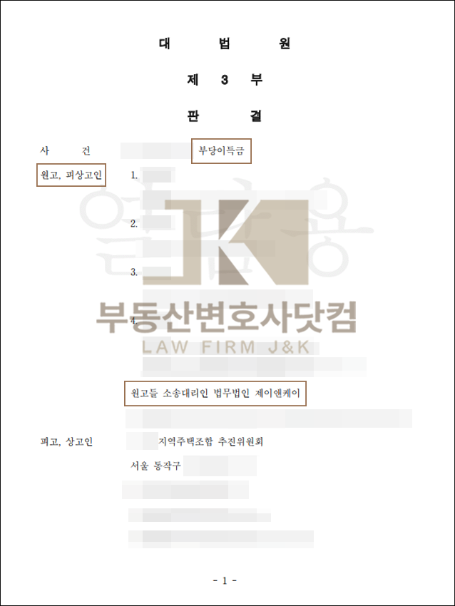 ▲ 의뢰인 3심 부당이득금 소송 승소